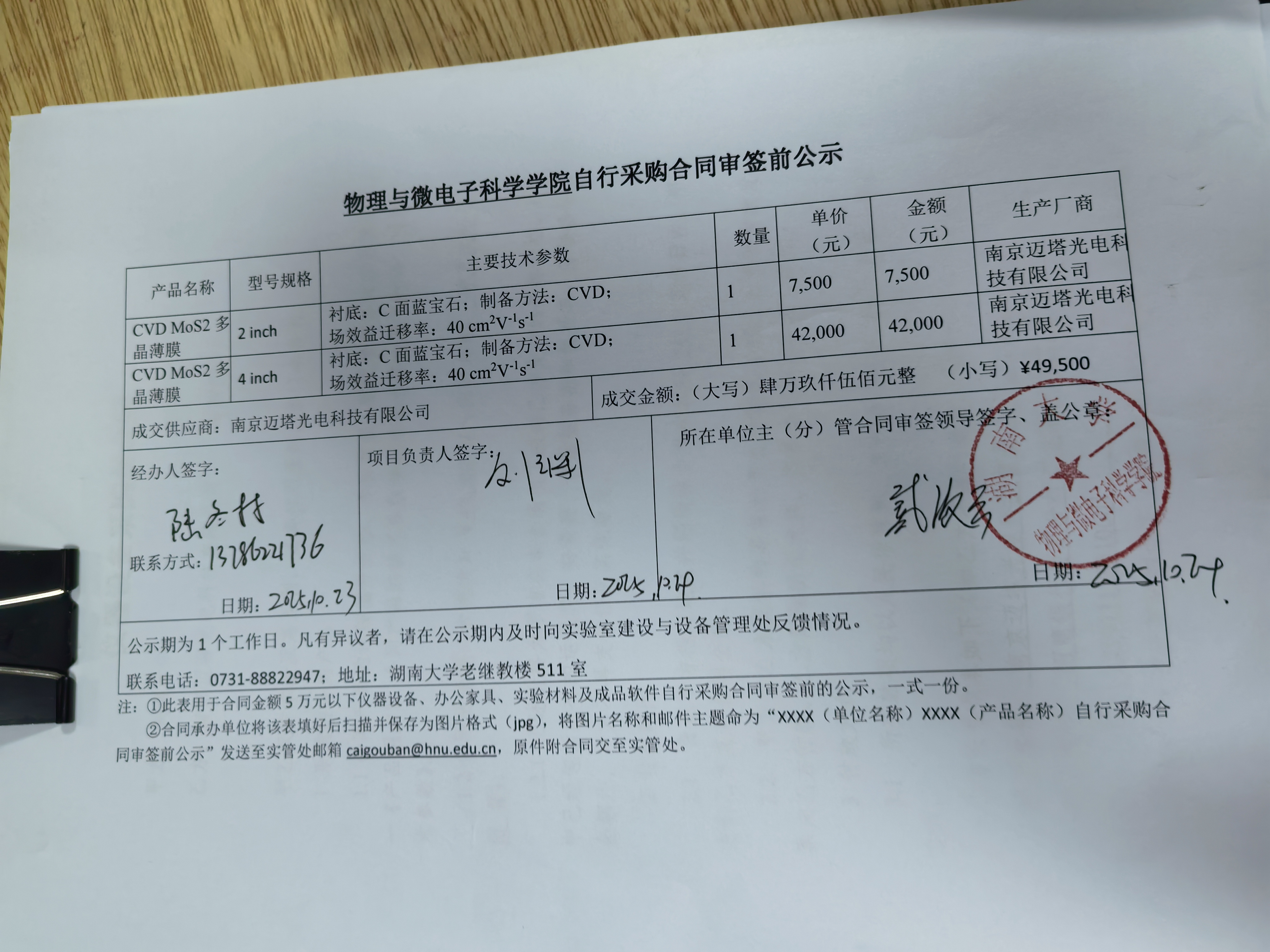 湖南大学物电院多晶薄膜自行采购合同审签前公示